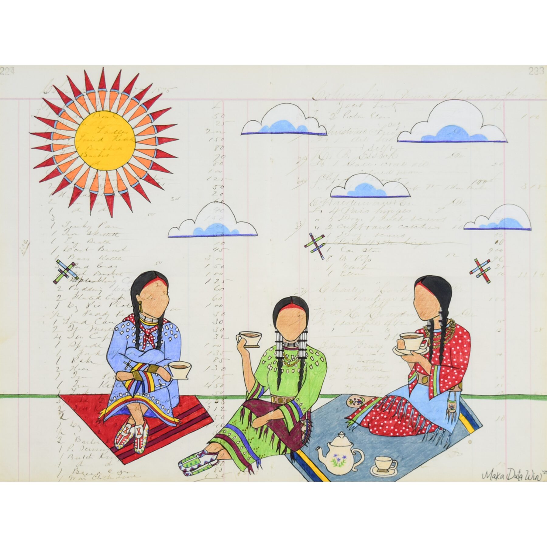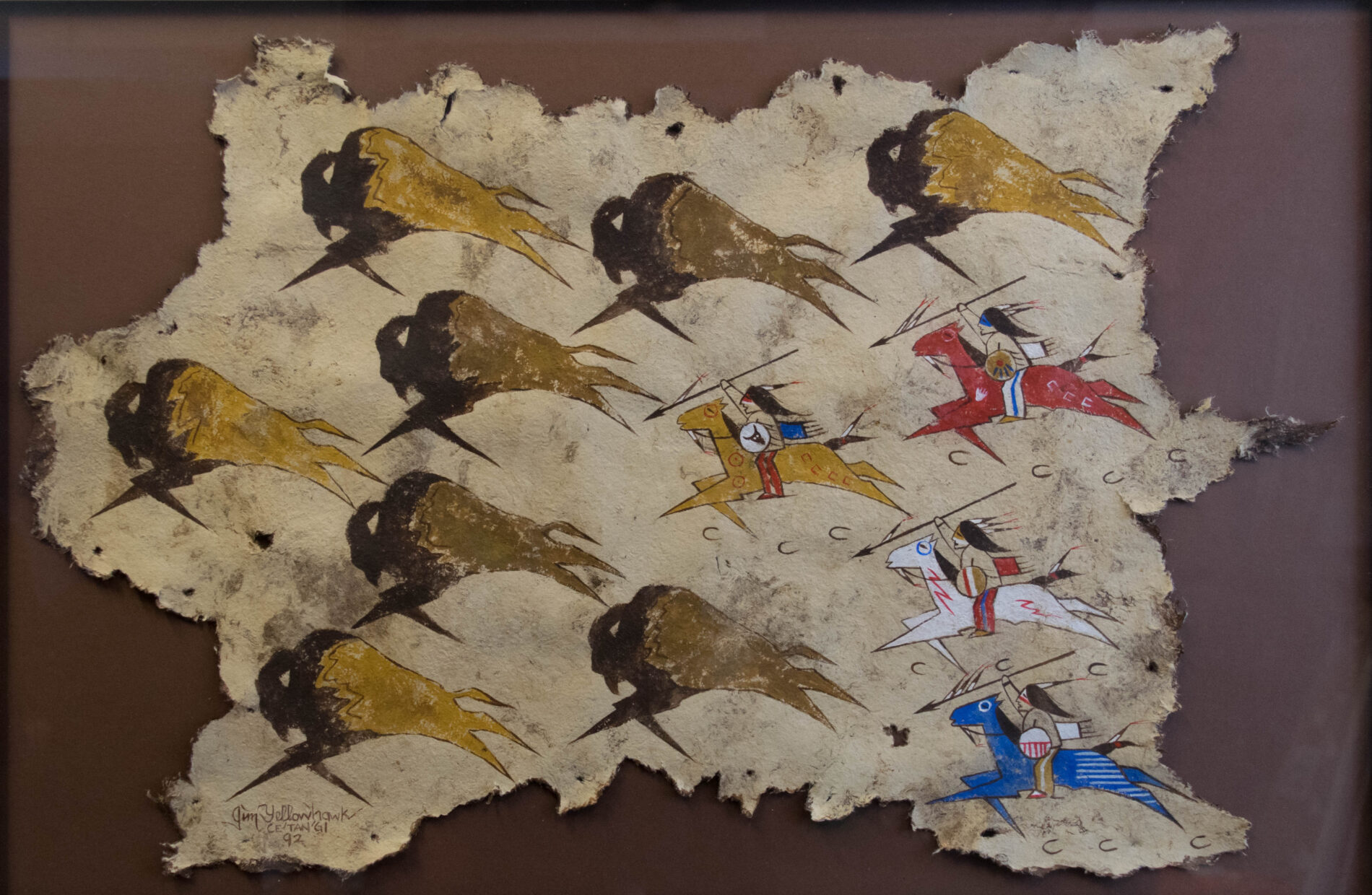 The Čhatkú Arts Center collection began with the purchase of three prize-winning pieces from the Red Cloud Indian Art Show in 1969, and has grown today to include nearly 13,000 pieces of the Native American contemporary and historical Lakota art.